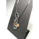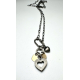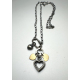 Oxidized sterling necklace with gold filled and sterling charms hanging on a sterling carabiner. Necklace is approximately 17" long with the heart charrm being approximately 1 1/8" long. Please be advised the carabiner is functional and works very well but it is not advisable to switch pendants out frequently as the material is sterling and the screw mechanism threading will eventually wear out.