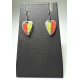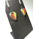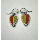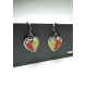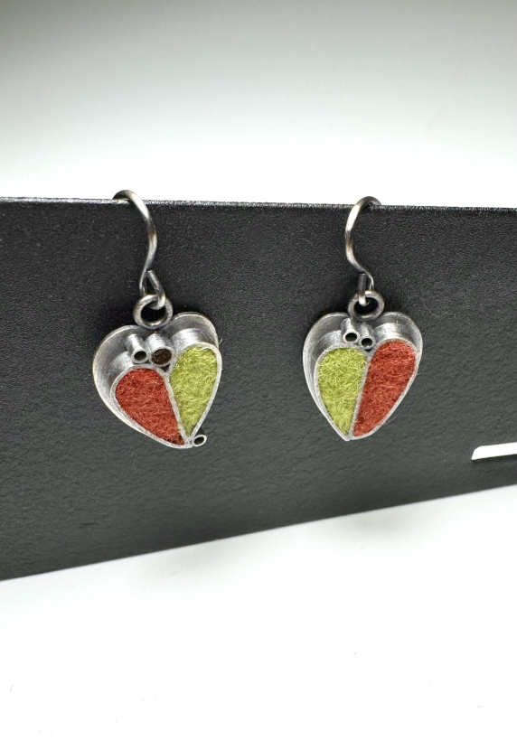 Asymmetrical oxidized sterling silver earrings set with wool felt. Colors are rust and avocado with a touch of chocolate. The shape is part heart and part leaf.. Earrings measure approximately from the top of the ear wire 1 1/4"h x 1/2"w x 1/8"d.