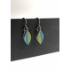 Oxidized sterling silver leaf shaped earrings set with wool felt. Colors are turquoise and peas. Other color combos are available. Please inquire.