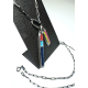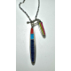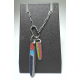 Fabricated oxidized sterling silver MCM Necklace with Bullet Option in Multicolor. Skinny Oval and Bullet shaped charms hanging on a sterling silver carabiner. Color is wool felt in a Multicolor Palette. Please be advised the sterling silver carabiner is completely functional and works very well but it is NOT advisable to switch pendants out frequently due to the soft nature of the silver which will risk thread wear of the screw mechanism. Tiny little sterling charm may vary. Chain measures approximately 24", with the Skinny Oval and Bullet drop measuring about 2 1/4"l x 3/4"w x 1/8"d.