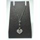 Fabricated oxidized sterlinf silver necklace. Mended heart is handging on a Sister Clasp. Necklace measures approximately 18" long. Dangling portion with heart and other elements measures approximately 1 3/8"h x 1/2" x 1/8"d.
