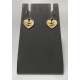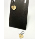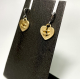 Mended Heart Earrings in 14k Vermeil dangling from oxidized sterling silver ear wires. I like to think of these as mended hearts and not broken hearts. Earrings measure from the top of the ear wire approximately: 7/8" h x 5/8" w x 1/8" d.