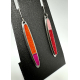 Fabricated oxidized sterling silver earrings set with wool felt. Color palette is Hot. I love these earrings. They're a great length with just the right amount of color distribution. Graphic. These earrings are a bit MCM with many design influences. Earrings measure from the top of the ear wire approximately:
