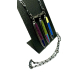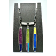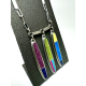 Fabricated oxidized sterling silver necklace set with wool felt. I love these skinny ovals. No two skinny oval is excatly the same, so please allow for slight variations in the size of the "cells' in which the felt is inalid. Colors and ditribution will be the same. Palette is Cool. N Total necklace length is approximately 24" long. Necklace can be shortened a little but (see extra clasp point in photos). Each skinny oval measure approximately 2" h x 1/4"w 1/8"d.