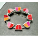 Fabricated oxidized sterling silver brooch Palette is Hot. Love these colors together! A very MCM inspired brooch and shapes. Orientation of the arches on the oval shape may vary. Measures approximately: 1"h x 2"w x 1/4"d.