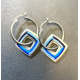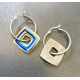 Oxidized sterling and wool felt charm hoop earrings. Earrings are in a blues palette.