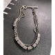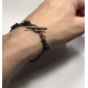Oxidized sterling silver bracelet. Square tubing beads strung on two of the three chains move around the bracelet. Toggle closure.