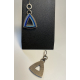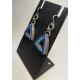Fabricated oxidized sterling earring set with wool felt. Interesting and unusual composition for triangle earrings that look great because they contour the jawline. Palette is Blues. Earrings meaure approximately from the top of the ear wire: 1 5/8"h x 7/8"w 1/8"d.